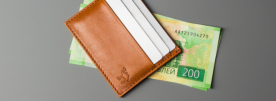 Миниатюрный футляр для хранения визитных или кредитных карт из натуральной кожи. С каждой стороны имеется по 3 кармана и посередине потайной карман.